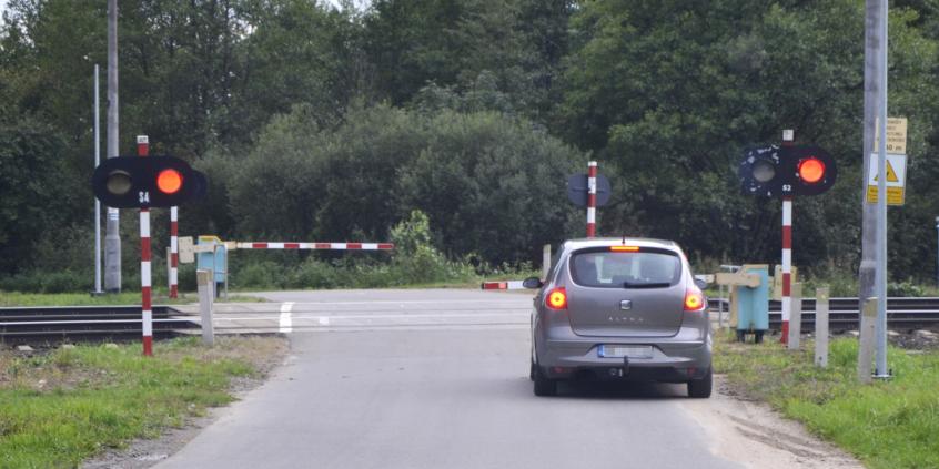 Чи у цій ситуації Ви маєте право об’їхати транспортний засіб, що рухається попереду, виїжджаючи на смугу зустрічного руху, якщо Ви встигнете зупинитися перед залізничним переїздом?